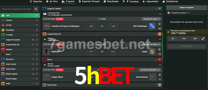 O 5hbet oferece uma grande seleção de opções de apostas em e-sports com probabilidades competitivas
